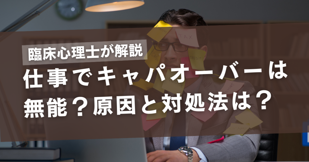 「仕事でキャパオーバーになるって自分は無能だ」と考えている方に向けて、そうなってしまう原因と対処法を、臨床心理士の視点で解説しました。 -